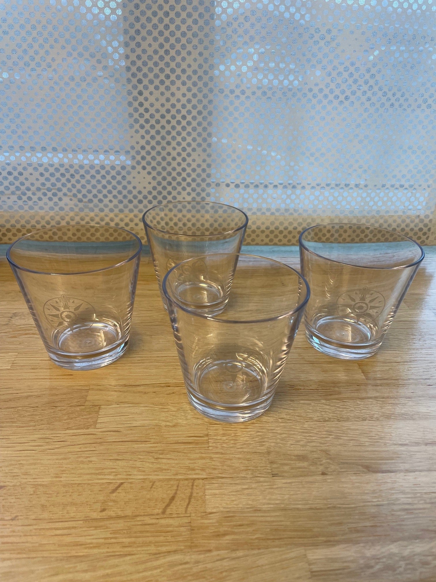 Fina dricksglas i okrossbar plast med SXK-logga. Tål micro och maskindisk. Stapelbara utan att fastna. Paketpris 299.- för fyra! Diameter topp 9,5 cm, botten 6,3 cm.